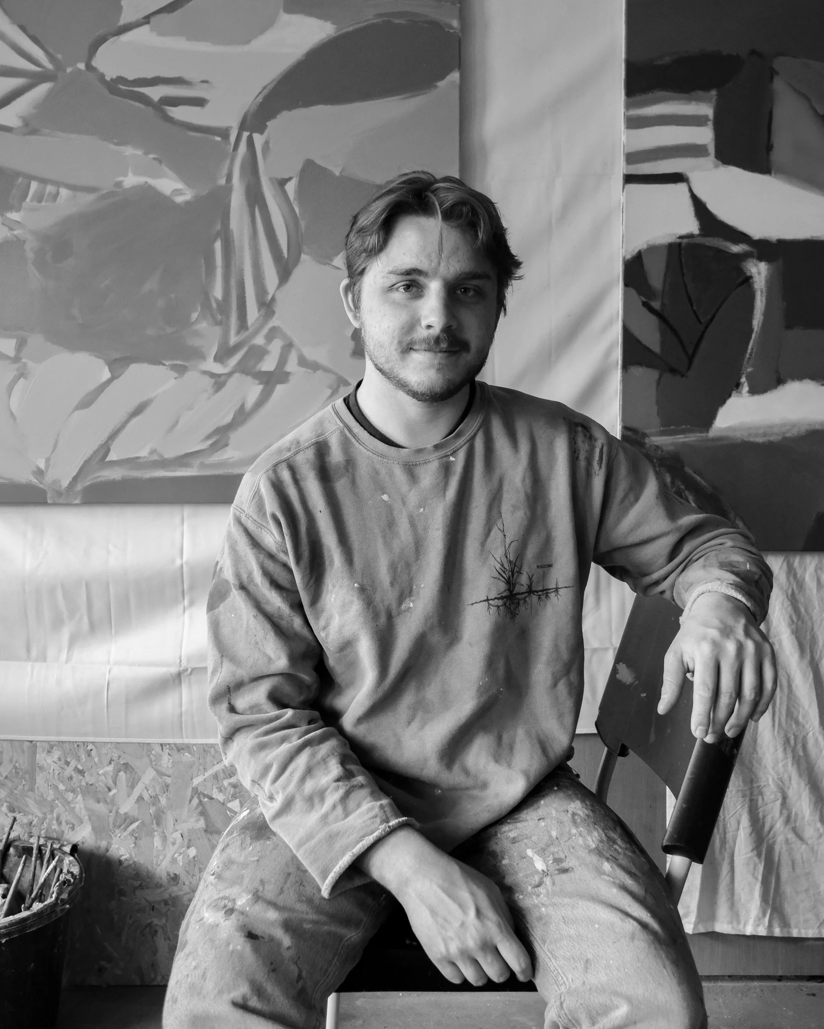 Following a degree in English Literature at the University of Sussex, Hilton began painting professionally in 2020. He has exhibited in many group shows, including with Felt Collections (London) and Reuter Bausch (Luxembourg.) His first solo show came in the winter of 2023 at The Table, Hay-on-Wye followed by another at Galleriet Agnes in Copenhagen in summer 2024. He has recently had another show of solo work at The Vanner Gallery in Salisbury.